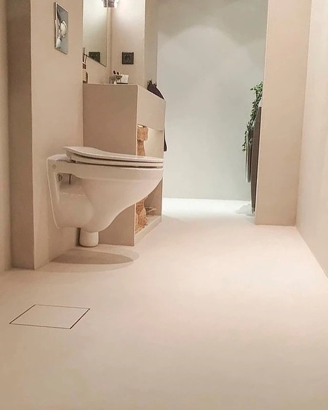 Vi bygger opp mikrosement på bad i flere tynne, håndlagde lag – til sammen kun 2–3 mm. Slik fungerer det: