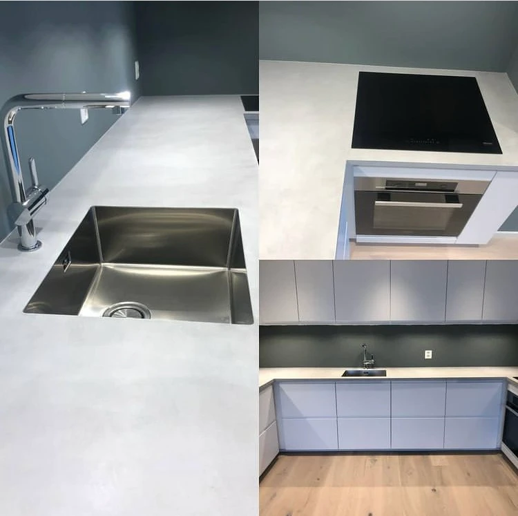 Mikrosement kjøkken gjør det enkelt å fornye overflater uten å rive eller bytte ut eksisterende løsninger. Mikrosement kan legges på de fleste overflater, forutsatt at underlaget er fast og stabilt, og passer perfekt for deg som ønsker å oppgradere kjøkkenet med et moderne uttrykk.