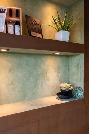 Mikrosement egner seg bedre på utsatte områder, eksempelvis i baderom eller over kjøkkenbenken, mens Terrastone og Stucco er fine som dekorasjon på stueveggen eller peisen.