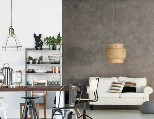 I tørre rom kan du velge mellom flere typer puss. Både Terrastone, Stucco Lustro og mikrosement passer godt til vegger, piper og peiser.